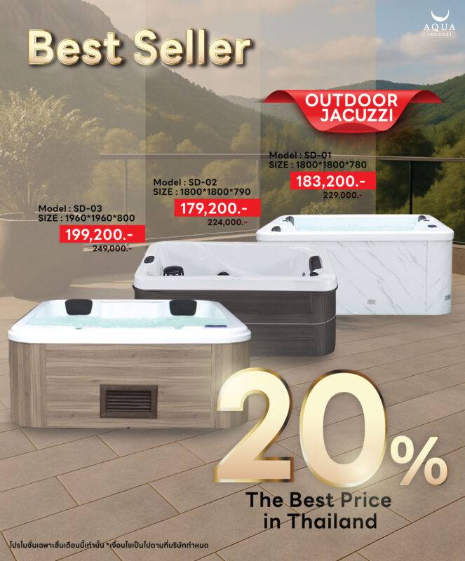 ดีไซน์เฉพาะจากทาง Aquajacuzzi ที่เหมาะสำหรับผู้ที่ทำธุรกิจเกี่ยวกับการท่องเที่ยว ที่พักและโรงแรม เนื่องด้วยดีไซน์ อ่างจากุชชี่ ที่เรียบหรูเเละมีสไตล์ มาพร้อมฟังก์ชันการทำงานที่ครบครัน ง่ายต่อการติดตั้งและการจัดวาง อีกทั้งยังทนทานต่อทุกสภาพอากาศ สามารถทำให้ห้องพักมีมูลค่า เพิ่ม ขึ้นได้